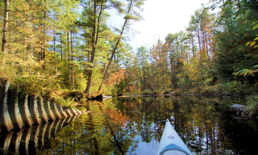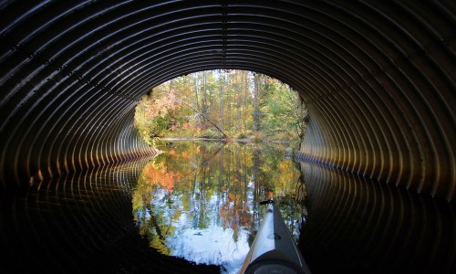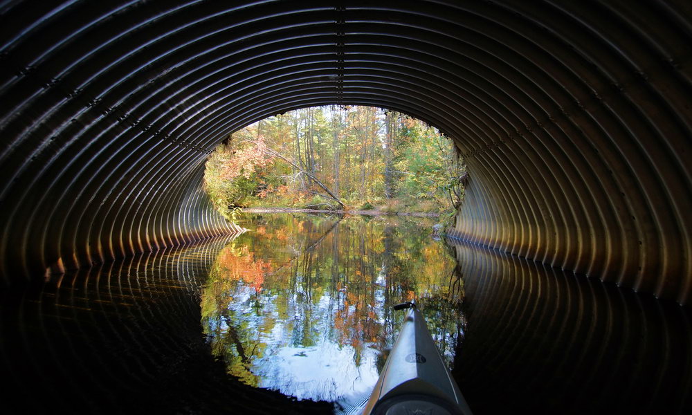 Sometimes the light at the end of the tunnel can be quite colorful. This is the view from Stewart Brook as it passes beneath a road somewhere between Second Lake and Lake Luzerne.