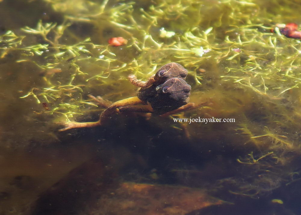 In early Spring, the males and females head for freshwater ponds and lakes. The males sing out their calls, which, believe it or not, sound rather like ducks quacking. The female finds her prince and lays her eggs. Once she has done so, the male fertilizes the egg mass and then everybody parts ways till next year. The photo below is of one of the egg masses. After the eggs hatch into tadpoles and the tadpoles morph into juvenile frogs, this new generation will also leave the pond, only to return the following year. JK