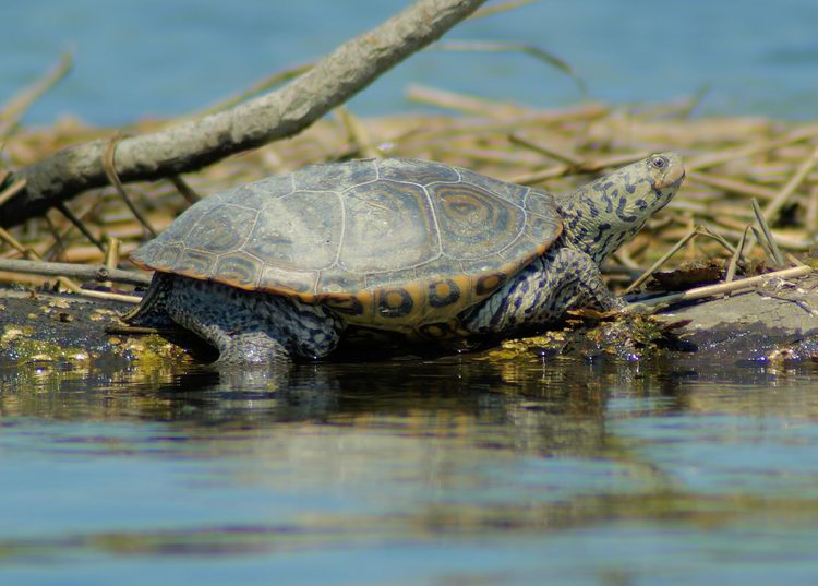 That was the good news. Heading back towards Terrapin Station, and feeling lucky, I startled a turtle sunning himself. I only heard the splash but I caught sight of him before he got too deep and I’m 90% certain that he had yellow striping down his legs. And that’s the bad news because that yellow striping probably makes him a Red-Eared Slider, a common but non-native species to Long Island waters. I didn’t see the red ear but but the striping is enough to make me think the worst. In the three years that I’ve been kayaking on the Nissequogue River, this is the first time I’ve seen a turtle that wasn’t a diamondback or a snapper. Unfortunately, you can find them all over in the Carman’s and Peconic Rivers. Other places, too.