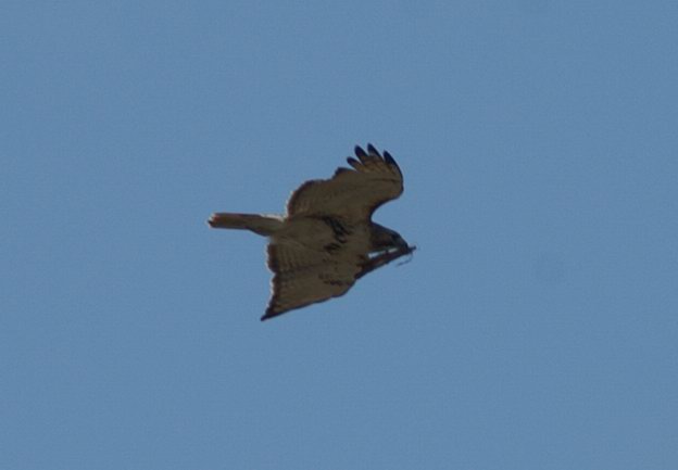 Nest Building Time Posted on April 16, 2008 by JK Wednesday, April 16, 2008 Grackles and Red Tails are both building nests. But probably not together. JK