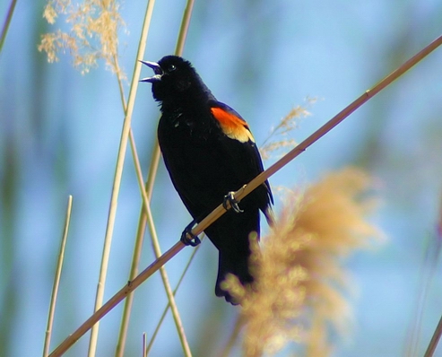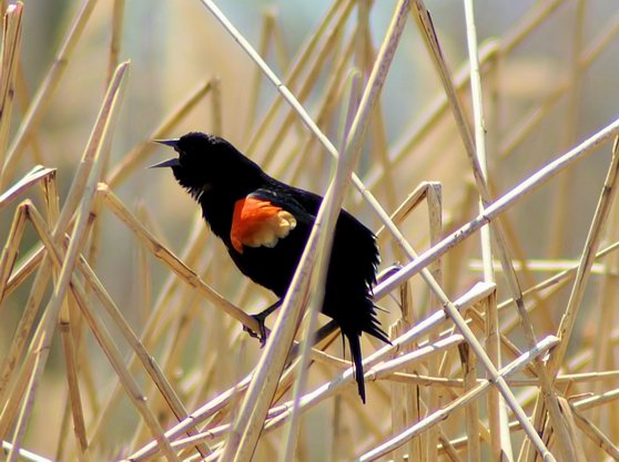 Kon-Ka-Reeeee Posted on April 18, 2008 by JK Friday, April 18, 2008 These male Red Winged Blackbirds were singing and displaying along a reedy canal off the main part of the river. JK