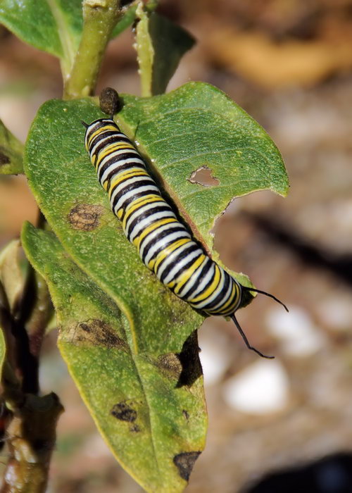 This is the caterpillar of a Monarch Butterfly that my friend Sue of Four Harbors Audubon Society spotted while we were cleaning up Young’s Island. It’s on a milkweed plant and getting ready to make itself a nice cozy cocoon. These pics look a bit static compared to what was going on. The back end of this guy, which, by the way is the end with the longer prongs, nearer the leaf edge, was twitching and jerking spasmodically. None of us are experts but we figured that this was the start of a new chapter in its life cycle. Or maybe it was dying, who knows? But I was not, for one, was not about to offer any mouth to mouth. Call me conservative, if you must. “I yam what I yam and that’s all what I yam.” A little Popeye for you folks.