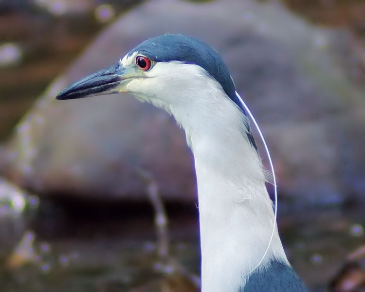 Here’s a head shot of a Black-crowned Night Heron. Its plume is clearly visible from this angle along with that beautiful red eye. This is a pic I would never have gotten without a head’s up from my friend Sue. Sue is also my boss at Four Harbors Audubon Society. She says, “Take this pic”, and I say, “Yes, ma’am, thank you ma’am. May I take another?” Anyways, as I was stowing my gear at the end of our August walk, Sue approached me and asked if I had seen the Night Herons behind the Old Grist Mill. I hadn’t. In fact, I hadn’t even looked. The Mill is directly across from the Duck Pond but there are so many times that I’m like a horse with blinders on. I just don’t ‘see’ it, if you know what I mean. Lucky for me, Sue did. I grabbed a camera and went to check it out. Right from the street I could see a proud-looking adult standing tall upon a rock. I took a couple of pics but even at street level I was still fifteen or more feet above him. I wanted to see if I could get a more horizontal shot so I scouted out the area. Just beyond the Mill is a private road and I like to be respectful of such things. Plus, I’m afraid of shotguns. Happily, the Mill itself has a back yard of sorts and I skirted around to the left of the building and found an opening. And there, from an angle not available from the street, I saw the largest concentration of Black-crowned Night Herons that I have ever encountered. There were at least fourteen birds within view. It was amazing. I see these guys nearly daily on the Nissequogue River but never in such numbers. A real treat. I don’t think that the Old Grist Mill will be one of my blind spots anymore. Thanks, Sue, for opening my eyes. JK