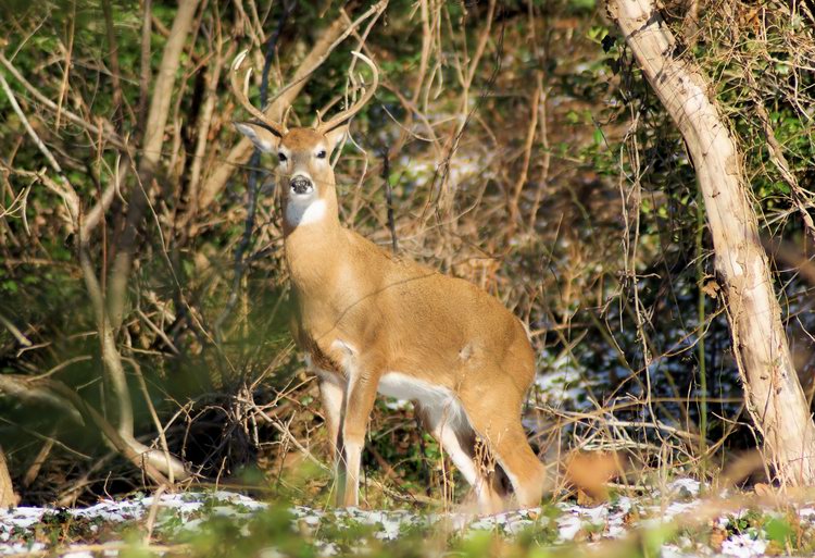 I came across this eight-pointer while tramping through the woods of Nissequogue two weeks ago. He did not seem to be bothered with my presence at all. He clearly saw me as I was taking pictures but never gave me a foot stomp or a good old-fashioned nose snort, which is what White-tailed Deer will do to show their displeasure with human company. I got to watch him for about twenty minutes as he walked around. I took these two shots as he entered a clearing. JK