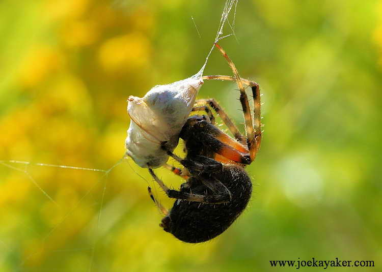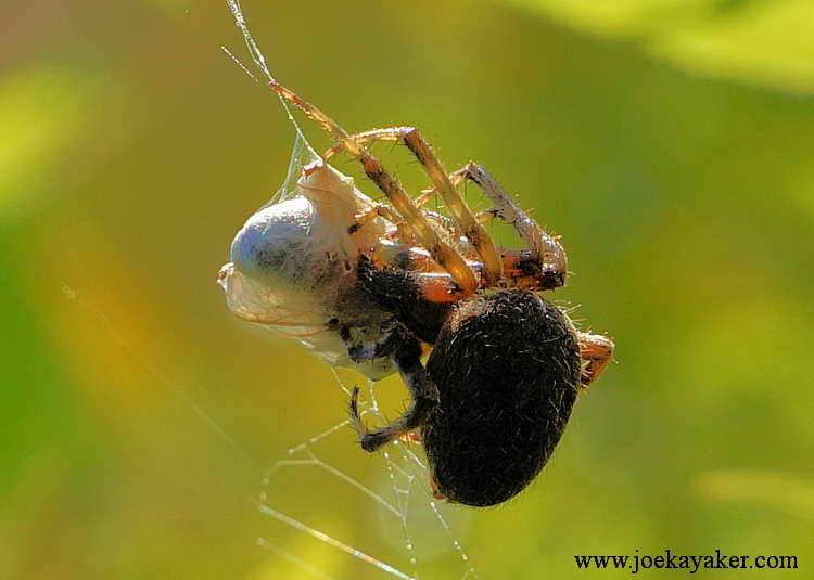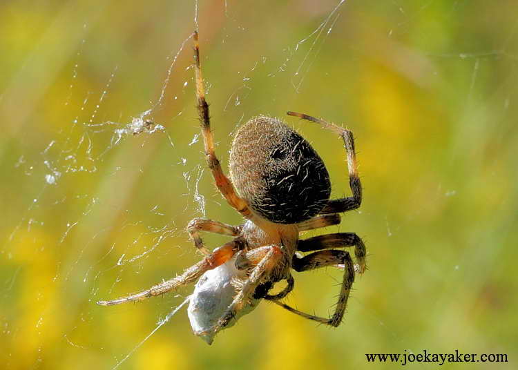 This spider and her prey put me in mind of Shelob, the spider from the Lord of the Rings story. For those of you who didn’t read the books or see the movies, Shelob is a monstrous spider that pretty much captures and eats anyone or anything that comes her way. She captures Frodo, one of the heroes of the story and then she…. She tells you to read the book ’cause it’s a great tale.