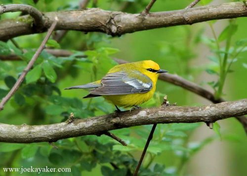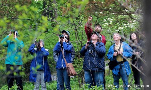 This is a group of birders at Avalon Park and Preserve. I don’t know what they’re seeing but they sure do seem happy about it. These folks are with Four Harbors Audubon Society. Four Harbors has walks at Avalon on the second Saturday of each month and this is a photo of some of the bird watchers during our most recent walk. It was a wet morning that got much wetter just as the walk was completed. It was as if the Birding Gods were looking out for us. And despite the weather, we did get to see some pretty cool things. Check out the pic below. It’s not one of my better shots but it is the first the first Blue-winged Warbler I’ve ever seen. There is a good chance that I never would have seen this bird, let alone identified it If I hadn’t been walking with a Four Harbors Audubon group. This is why I go on these walks. I get to find the birds and I get an education. You should join us next month. Maybe we’ll find a bird for you. JK