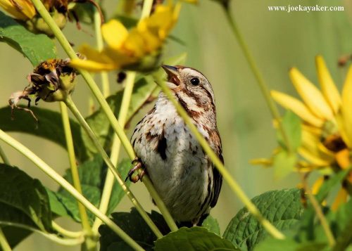 This is a Song Sparrow. It’s, well, singing. Do I really need to embellish upon that? This bird sings better than I write, not that that’s hard to do. It’s also much prettier. Of course, that’s even easier. JK