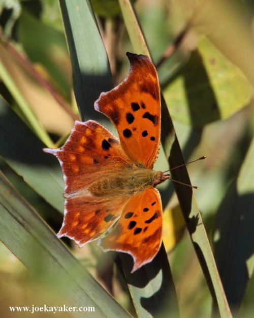 I am unaware of any Exclamation Point Butterflies. There is a ridiculously similar butterfly called the Eastern Comma but I don’t think I’ve ever gotten photos of that one either. JK.
