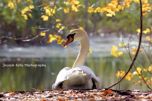 This is a photo of a Mute Swan resting near the edge of the freshwater pond at Morton Refuge in Sag Harbor. This Swan is obviously aware of my presence but it’s just not worried about me. That was very cool as it allowed me frame him with those lovely yellow Autumn tinged leaves. May I suggest clicking on each of these images? You’ll get to view larger versions of these photographs. JK
