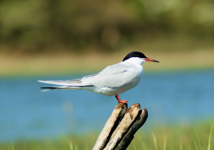 Well, almost. On May 9th I posted a photo of some Common Terns who were not yet wearing their breeding plumage. This tern is sporting his all black skullcap and he’s just about ready for some action. The black on his bill will retreat till it only covers the tip. This is another one of the shots from Wednesday’s outing. If you take a close look at his leg you will see that he is banded. No, that is not an ankle bracelet. Last year I noticed several of these terns that were banded. How do you catch a tern? Most times I can barely follow them with the camera. JK