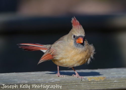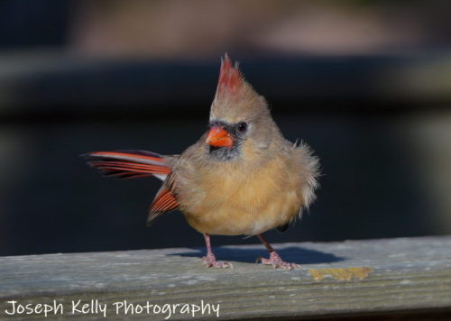 This is a female Northern Cardinal that I saw at Morton Refuge in Sag Harbor. Morton is known for the several species of birds that will take and eat bird seed from your hand. Cardinals do not engage in this activity but they will hang around hoping and waiting for any dropped seeds. This lovely lady may be trying to will me into being careless or clumsy. JK.