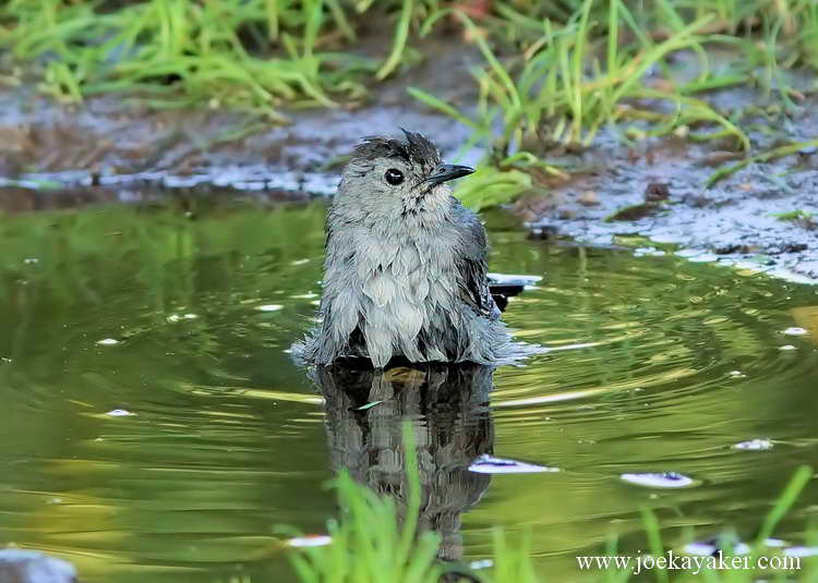 In my previous post I mentioned that I was waiting for birds near the artesian well at West Meadow Beach. These two photographs are an example of why I visit the well. Several species of birds enjoy taking baths in the puddle that forms there. This Catbird is just one of many birds that come by for a freshwater bath. The water, by the way, is absolutely delicious. JK