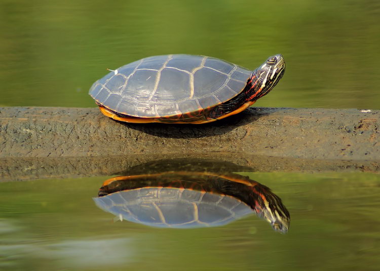This is an Eastern Painted Turtle that I came across last month while paddling through Wertheim. These very beautiful turtles are regulars in most freshwater environments here on Long Island and elsewhere. I’ve photographed them in Maine as well but these guys can found as far north as Nova Scotia and all the way down to Georgia. I’ve always been a big fan of these turtles so it’s good to know I can find them within such a broad range. That observation points to another: This is a design that works. In fact, the Eastern variety is but one of four subspecies of Painted Turtle. Painted Turtles (and all their subspecies) are native to a great deal of North America. They can be found in more places than any other turtle on the continent. Again, this is a design that works. The Blind Watchmaker knew what he was doing that day. He was also in a very artistic mood at the time because all Painted Turtles are real eye candy. I’m only familiar with the Eastern variety, which I have always found to be the prettiest turtles in these parts, but the other subspecies are also good-looking. In fact, the Western variety looks spectacular although I’ve never seen one in person. Painted Turtles do indeed seem to be painted wherever they’re found. Blind or no, that watchmaker had a real eye for color. JK