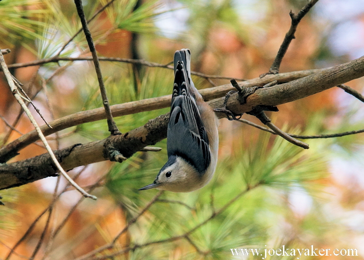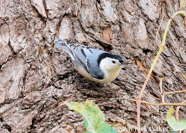 This handsome devil is a White-breasted Nuthatch. Besides their looks and their rather nasal call, Nuthatches have another distinguishing feature. They have the curious habit of working their way down a tree in their search for insects. Most other birds work their way up trees. Nuthatches are individualists. Plus sometimes they make for some cool pics. JK
