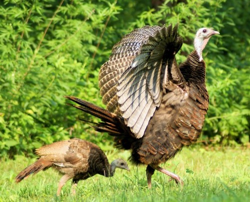 I was out east a few days back, ostensibly to help a friend deliver an armoire to Bridgehampton. He didn’t really need my help but it gave us an excuse to check possible kayak launch sites and stop in at Morton Refuge. I was hoping to see some turkeys. I had seen four during my last visit at the start of the year but I failed to get any decent pics. I had some better luck this time. During our hike at Morton we came across the same bachelor group twice. All males, hence the name bachelor group, they were foraging in an open field when we first encountered them. A bit later on we saw them again, this time in a wooded area. These shots, both of the same bird, were taken there. These pics may also explain why turkeys have segregated flocks. Think about it. If you were a turkey hen, would you want to look at that all year round? It’s amazing that the males are willing to hang out with each other. Maybe it’s a case of misery loving company. Or, perhaps, here is an example of beauty being in the eye of the beholder. I can’t speak for others but, in my mind’s eye, there few things more beautiful than a turkey on the Thanksgiving table. Yes, I realize I’ve drifted off topic but when I think turkey, I think Thanksgiving. Yum. JK