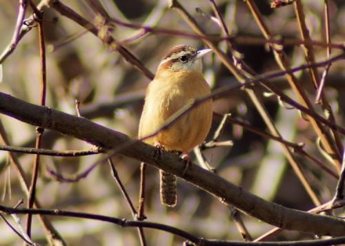 It turns out that House Wrens are rare this time of year but these guys, Winter Wrens, come down from up north to enjoy our balmy winters. Maybe this guy was looking for some extra warmth. I don’t think he was counting on sharing the place with my cats, although neither of my two sleeping beauties noticed him. Top predators indeed.