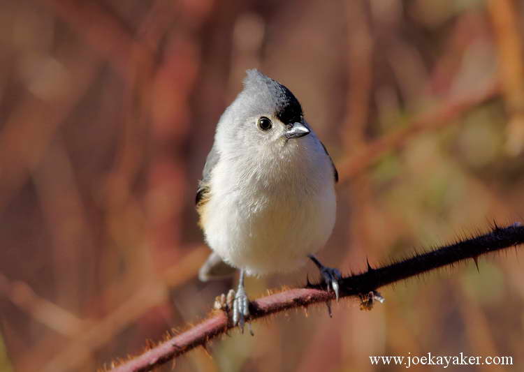 This is a Tufted Titmouse. Usually, when I post two pics in a single post, I try to find something humorous or intelligent to say to act as a sort of filler between the two photographs. I really don’t have much to say about these pics today. I’m sorry to let you folks down but, gosh, isn’t this bird amazingly photogenic? There have been plenty of times in the past when I only post a single photo of a bird just because I couldn’t come up with some witty banter. It is often much easier to take a photograph than it is to write about said photograph. But look, how could I choose between these two pics? This is a Tufted Titmouse and, by golly, it’s cute in both photos. JK