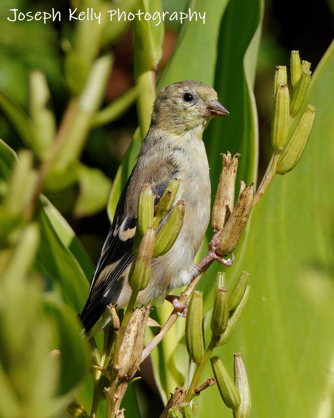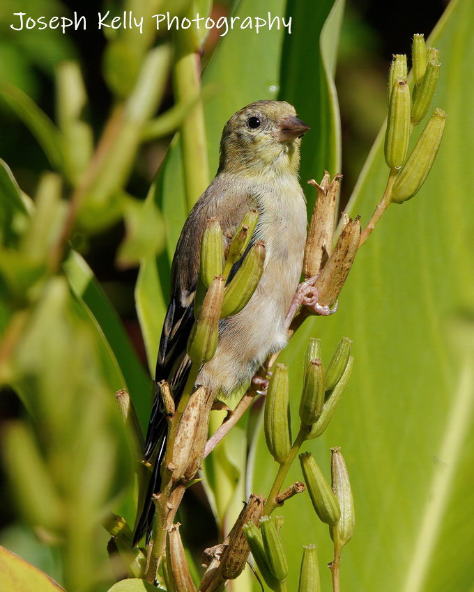 This is a Goldfinch sitting amongst Canna Lilies and feeding on the seeds of an Evening Primrose. The flowers are gone but, as with almost all flowers, the seeds remain. Their beauty may have faded but not their usefulness. When the petals of a flower fall away, the flower hasn’t died. The fact is that this is the next and perhaps most important stage of that flower.