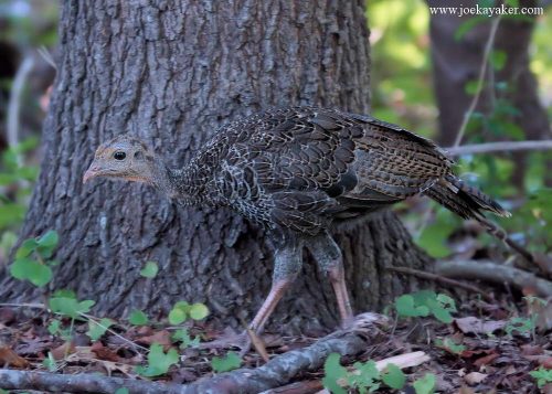 Check out at how well this young Wild Turkey blends into the background. Full grown Turkeys don’t have many natural predators here on Long Island but their chicks, which are also known as poults, need to keep out of sight and off the menu. A fox or even one of the larger hawks could easily make a meal out of a young Turkey. I imagine that’s the reason that poults don’t dress as flashily as their fathers. JK