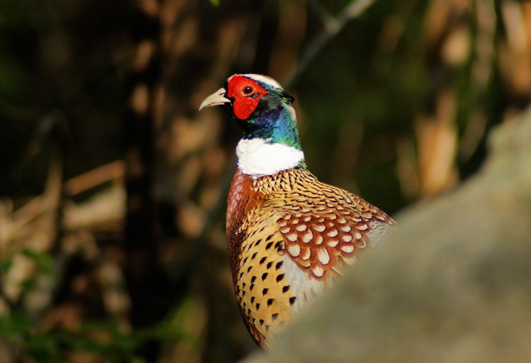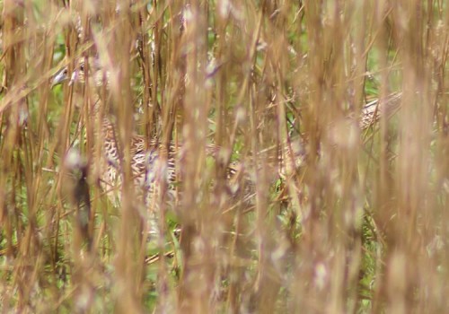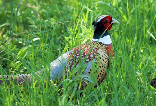 This is a Ring-necked Pheasant that I saw at Twin Oaks Horse Sanctuary. Twin Oaks is a non-profit horse rescue/sanctuary in Manorville, NY. They rescue older, unwanted horses and give them a nice place to live out their days. They really do good stuff. I was there to help capture some video footage for a fundraising appeal. All morning I had been hearing the pheasants call out but I could never locate one. They sound sort of like a rooster with a sore throat but without the whole cock-a-doodle-do bit. After we got the footage for the video I went back to searching for pheasants. I was still hearing them but not seeing any when Cynthia, (the young lady that was writer, director, producer, editor, and reluctant star of the vid), took the time out to point this guy out to me. She did this while she was distributing hay for the horses with a wheelbarrow. Hey, it’s not all videos and glamour when you’re caring for horses. This guy was in some underbrush at first so I had to stalk him a bit before capturing this shot in a somewhat more open area but without Cynthia’s help, this shot never happens. I’d still be scratching my head, wondering where the heck that bird was. Thank you Cynthia, and good luck with your fundraiser. JK